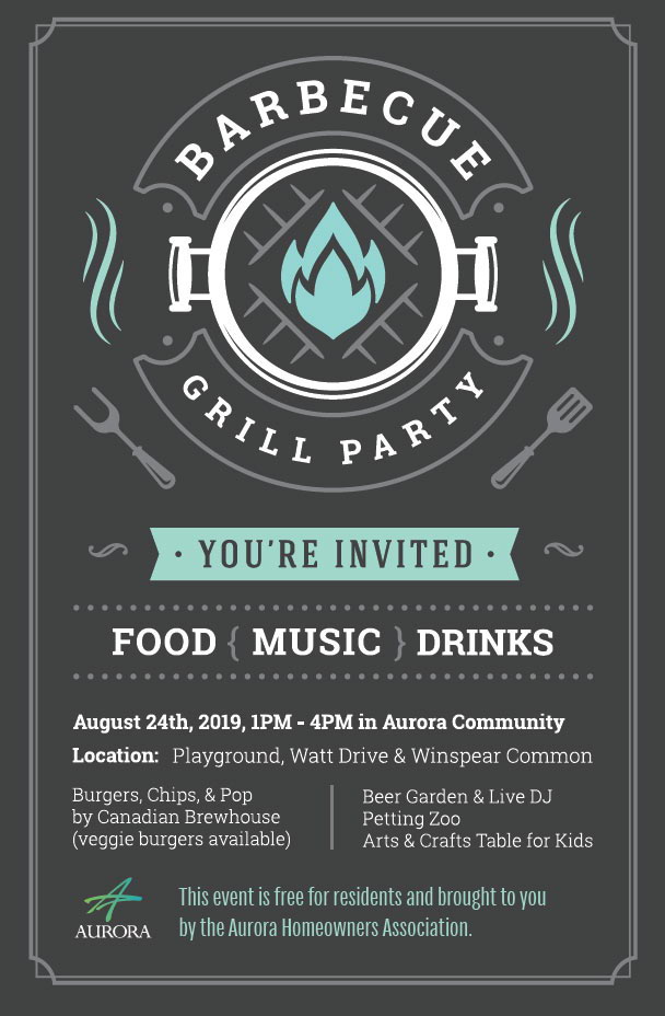 Aurora residents are invited to celebrate their community, at this summer outdoor event. Enjoy burgers, live music, and entertainment for the whole family. This event is brought to you by the Aurora Homeowners Association.
